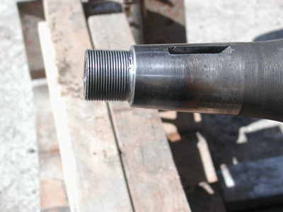 Drive Axle - Threads machined by Axle Master Machine, sole purpose is to cut new threads and or chase existing thread when extensive damage has not accrued For both trailer and drive axle spindles, various off road machinery We can cut 12 and 16 thread pitch for both left and right handed threads Image: New threads welded and outer bearing area remachined |